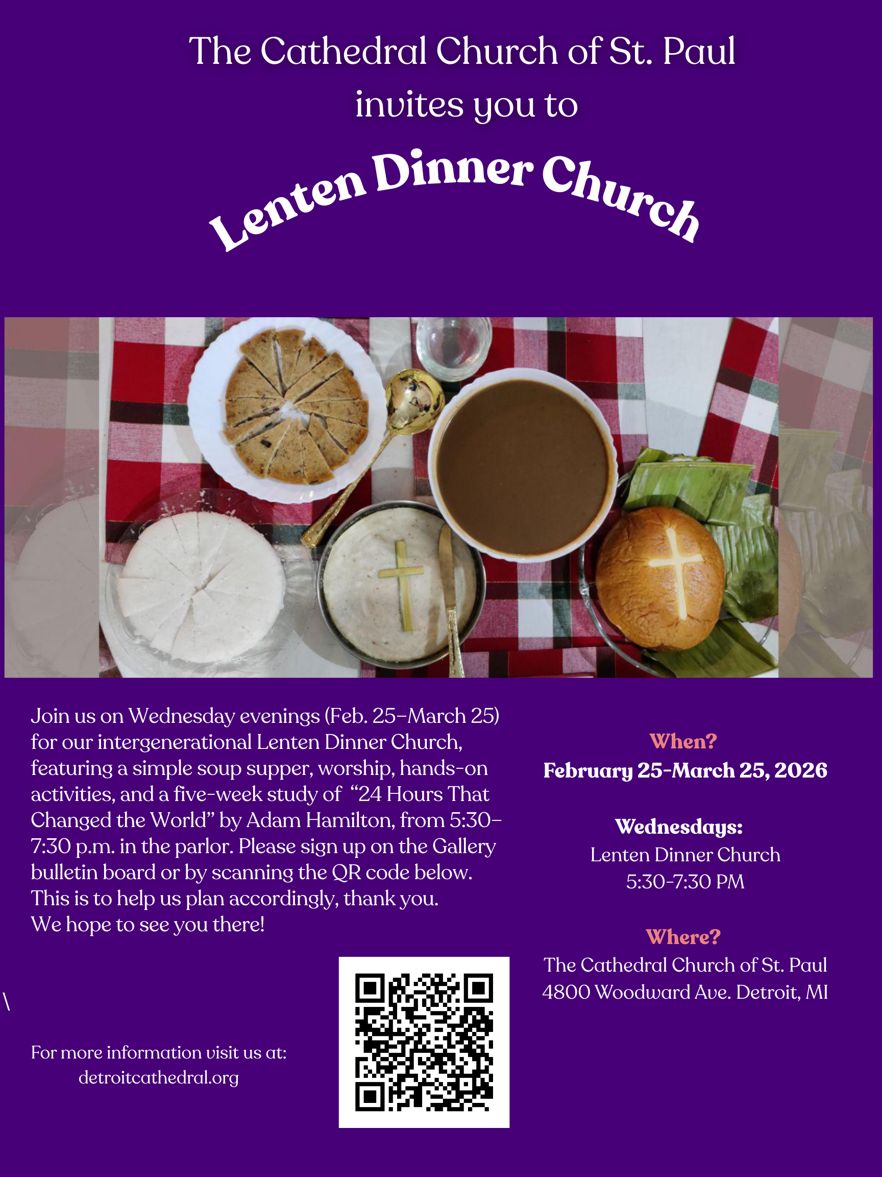 The Cathedral has begin a new monthly outreach initiative in partnership with All.together Ministries, FedUp Ministries, Wayne State’s CHIP Clinic, and our Feeding Hungry People Committee. This collaboration provides laundry services, shower services, health services, a place to worship, and take-away food to our Midtown Detroit community and beyond. We previously held events on September 28, November 2 & 23, December 14, 2025, and January 18, 2026.